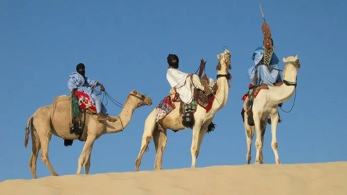 One of the key elements of the Festival in the Desert was its incorporation of Tuareg culture. The Tuaregs have a rich history of hosting festivals and celebrations in the desert. The annual Sebiba Festival marks a multi-millennium-long peace treaty between two Tuareg tribes, with women singing traditional songs to the beat of the ganga, a traditional tambourine-like instrument, while men dressed as warriors dance to the tunes. The Festival in the Desert blended these traditions with Western music festival traditions to create a unique result. The elaborate outfits take the shape of the long and loose indigo dress robes of the region, camels for transport in place of cars, and the bright fluorescent tents taking the form of large canvas clothes secured by sticks dug into the sand. Photos of festival goers arriving on camels to the festival, donning the Tuareg’s colorful traditional robes, have become synonymous with the event.