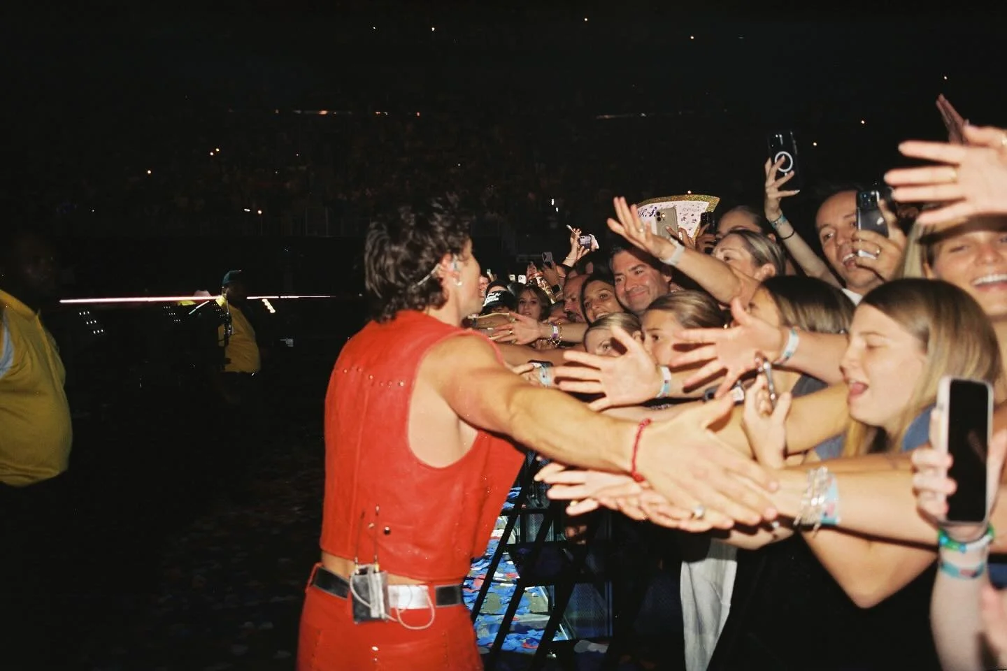 At 9:08 p.m., a dreamy montage of Boone playing a soft melody on the piano lit up the screen as he sang, “I think of you each time the music plays / Oh love this is the night / The night of our lives.” The music seamlessly transitioned into “I Wanna Be The One You Call” as Boone appeared on stage surrounded by smoke wearing an all black denim outfit detailed with silver sequins. Running around the indoor venue, Boone quickly connected with fans around the barricade, waving to each and every person he could.